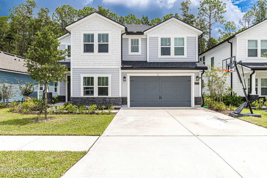 Why wait for a new home to be built? Conveniently, this new custom-built home is ready for you now! Located in the prestige Eagle Landing at Oakleaf Plantation community, including premium amenities such as Eagle Landing Golf Club, Tennis courts, several pools, treehouse, canoes, playground, and more. Backing up to a serene preserve, this elegant two-story home features tasteful upgrades at every turn, including an insulated garage, 8' doors on the first floor, tray ceilings, extended en-suite bathroom, an office with glass French doors, additional full bathroom upstairs, and so much more. The inviting covered front porch and large foyer lead you into the open floor plan, highlighted by stylish hardwood laminate flooring and custom features throughout. The gourmet kitchen is dreamy, with a large island with seating, drop-in stovetop with a stainless hood range, and a chic backsplash comp...