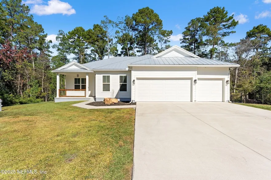 Experience serene living in this custom-built 3-bedroom, 2-bath home with a 3-car garage, perfectly situated on 2 acres along the North Fork of Black Creek. Enjoy one-level living in a no-flood zone with 10-ft ceilings, an open-concept layout, and tile flooring throughout. The spacious master suite features a large ensuite bath, while the chef's kitchen boasts a generous island, custom solid wood cabinets, and granite countertops. Gather by the fireplace or in the separate dining area. Energy-efficient details are found throughout, ensuring comfort and savings. A natural spring and brook run through the property's preserve area, adding to the peaceful setting. The fenced backyard offers room to roam, complete with a large chicken coop. Enjoy deep-water access for boating or kayaking with ocean navigable waters. No HOA or CDD this hidden gem blends modern quality with nature's beauty
