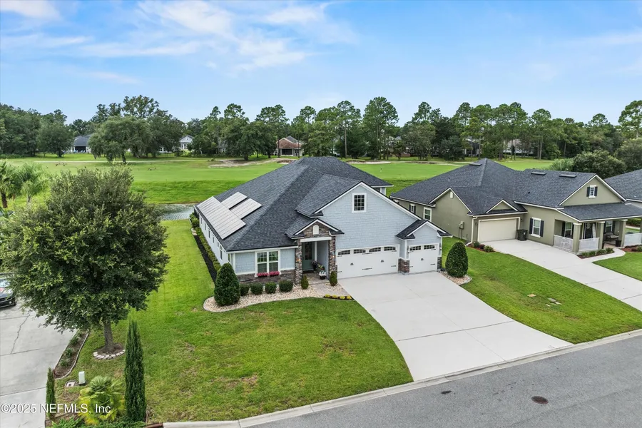 Imagine living in this stunning 2016 custom-built pool home, designed for both entertaining & comfortable everyday living. The double-door entry reveals a magnificent great room with soaring vaulted ceilings, effortlessly connecting to a gourmet kitchen and dining area - perfect for gatherings. Chefs will delight in the expansive center island, quartz countertops, stainless appliances, gas cooktop, & double wall ovens. Retreat to one of two spacious primary suites on the main level, each with its own bath & walk-in closet; the main suite offers a luxurious bath & an immense walk-in closet. Rich hardwood floors throughout the main floor, complemented by a cozy gas fireplace. Upstairs, a guest suite plus an enormous bonus room (doubles as a 4th bedroom), adaptable to any need. The outdoor oasis beckons with a vaulted, covered patio, complete with a TV, gas fireplace, & a sparkling saltwater pool. In-ground sprinklers & new solar panels for energy savings. 3 Car Garage. So much to love! Magnolia Point Golf and Country Club features an 18-hole championship golf course. Also offered are elite tennis courts & the newly renovated "Activity Zone" which includes sand volleyball, a pickleball court, and a playground. There's an Olympic size pool, open daily featuring a splash pad and poolside service. Seasonal cuisine at The Pub, featuring 8 flat-screen TVs and live music every Friday night. For a more refined evening, enjoy dinner in the elegant Crystal Dining Room.