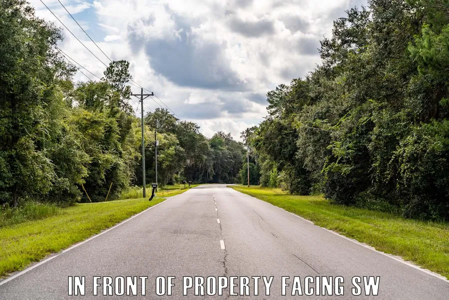 S Bellamy Rd. is the public paved road along the front of the property, and Rookery Rd. is a private road that runs alongside the property.
