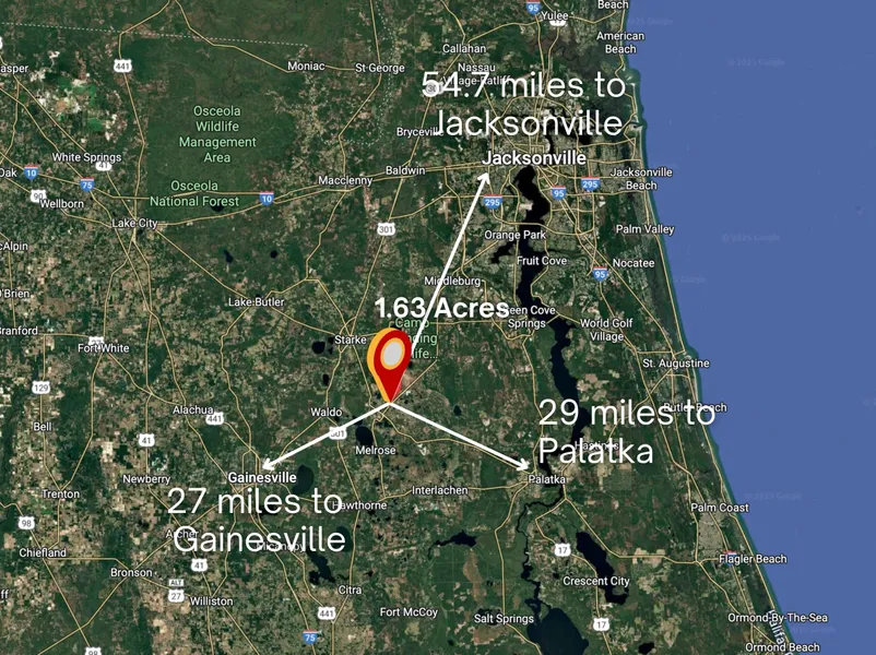 Keystone Heights is a charming small town known for its welcoming community, beautiful lakes, and easy pace of life. Just 1.5 miles away, youll find downtown Keystone Heights with shopping, dining, and everyday conveniences. Gainesville, home to the University of Florida, is only 29 miles west, while Jacksonville is just 48 miles northeast, giving you access to major employment, cultural attractions, and international travel.