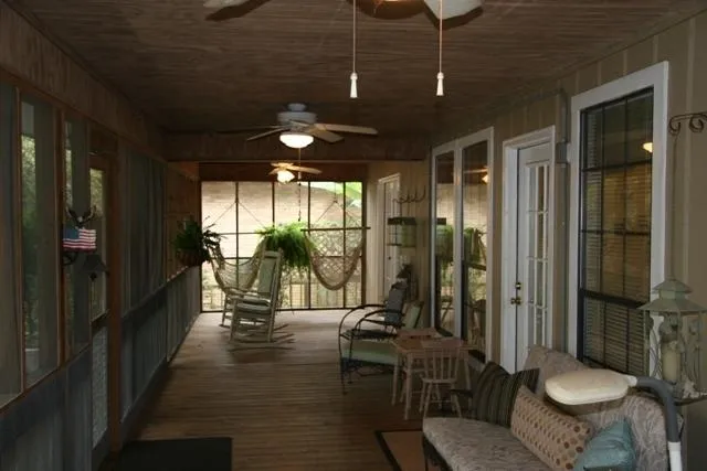 THE MAIN HOUSE FEATURES A FULL LENGTH SCREENED PORCH FOR A LOVELY VIEW OF THE LAKE. LIVING ROOM/DEN WITH FIRE PLACE, MASTER BEDROOM WITH FULL BATH, 2 WALKIN CLOSETS AND LINEN CLOSET. BEDROOM #2, WITH WALKIN CLOSET, FULL BATH WITH LINEN CLOSET. A NICE KITCHEN AND BREAKFAST AREA WITH PANTRY. THE HOME HAS SEVERAL STORAGE CLOSETS AND WASHER AND DRYER HOOK UPS.
