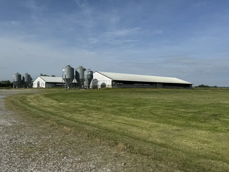Have you ever wanted to own your business? 12.28 acres just east of Flora provides that opportunity. This turnkey Hog confinement operation has 2 44 x 120 barns that will house 1600 nursery pigs per barn for a total of 3200 pigs. If want to have wean to finish pigs you could run about 725 in each barn for a total of 1450. These barn were just in use last month so you could get right into business. The barns have rural water & natural gas all ready hooked up. There are 4 bulk bins, 2 at each barn, that hold 24000 lbs of feed plus 1 smaller bin. A Flex flow delivery system provides the feed to the pigs. The barns are connected to the load out shut for an easy transition for loading out or receiving pigs. Both barns have a TC 5 control system that controls the automatic curtain system, heat & fans depending upon the current weather conditions. 1 barn has an office, shower area & laundry are...
