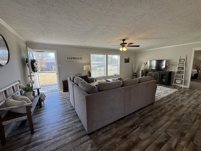 This 2019 Champion 3-bedroom, 2-bathroom home sits on a meticulously maintained 2-acre property just minutes from Flora. Featuring an open-concept living, kitchen, and dining area, it offers a spacious layout perfect for gatherings. The kitchen boasts beautiful wood cabinets, a large island, and a pantry, while the master suite includes an ensuite bath with a soaking tub, walk-in shower, and a massive walk-in closet. Two additional bedrooms and a nearby guest bathroom provide plenty of space. The laundry room includes a sink and counter for convenience. The home has LVT flooring throughout with the exception on the bedrooms. Step outside through the dining room’s patio doors to enjoy the deck, complete with a gazebo and pool, perfect for relaxing while watching sunsets.