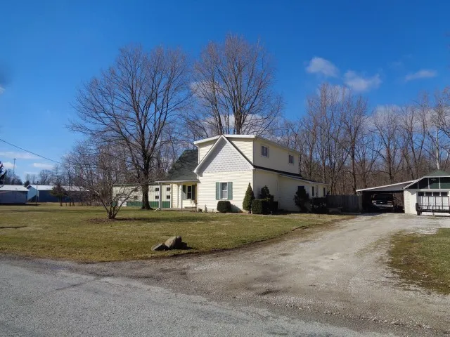 Country Living! 3.73 Acres in Dick Johnson Township. Close to Middle School and High School. Newer 3 bay garage, smaller 1 car + carport garage and a 3rd outbuilding. Big yard with some woods. Unique in design with large eat in kitchen with appliances. 2nd story added has a bedroom and a loft area with closet. Could easily be 2-3 bedrooms. Fenced in backyard. HVAC new in 2017. Call or text Lori today (812) 239-3577