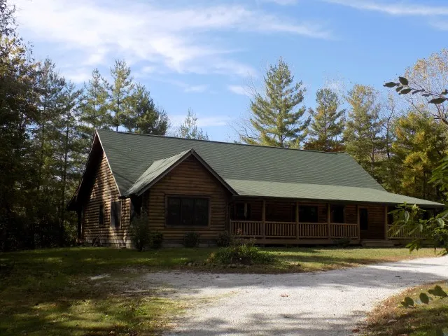 Gorgeous log home! Secluded on a 25 acre lake with access to 55 acre lake. Lakes are great for fishing and boating. There is a beautiful large kitchen fully appliance with breakfast nook and pantry. Stunning stone fireplace in the great room that leads out to covered back porch and lake view. Formal dining room/ currently being used as office, but could easily be 3rd bedroom. Wonderful views from both covered porches. New central air and water heater. Property sits on 4.07 acres, has 2 pole barns. The 25x40 pole barn has a workshop and bathroom, and there is a 12x20. This home is immaculate. To view call or text Linda 812-236-4137!