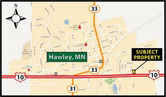 Auction Note: This property is extremely clean, well maintained, and attractive. It is located on the east side of Hawley, MN on a 4.9 acres lot, which provides 650 feet of frontage to Minnesota Highway 10.