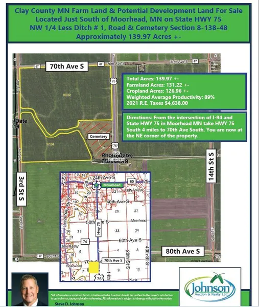 Research Parcel InformationFrom the intersection of Interstate 94 and State Hwy 75 in Moorhead, MN take Hwy 75 south 4 miles. You are now a the NE corner of the property