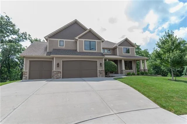 Gorgeous 1.5 Story situated on a private cul-de-sac lot backing to trees. This home greets you with vaulted ceilings and hardwood floors. The Living Room offers a wall of windows, floor to ceiling stone fireplace, and built-ins. The Kitchen boasts a large island, gas cooktop, granite countertops, and a walk-in pantry. The formal dining room is great for entertaining with stunning wainscoting. Main floor Master Suite with a large master bath featuring a double vanity, freestanding tub, and a walk-in tile shower with dual showerheads. Four spacious bedrooms upstairs, all with walk-in closets. The lower level includes a 6th bedroom, full bath, wet bar, suspended garage, and safe room. Enjoy the outdoors on the covered deck or over-sized patio with a fire pit.