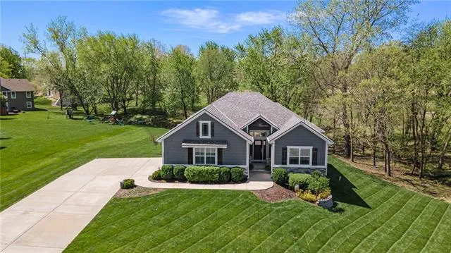 Well maintained and move-in ready custom built Woodview II plan by Walker Custom Homes completed in 2018. Walking up to the home you are welcomed with a long sidewalk and a covered front porch. Greeted into an open main level ideal for entertaining with views looking over just shy of a one acre lot with foliage and green space behind. Living room boasts 9 ft ceilings and a fireplace. Custom kitchen w/ painted cabinets, granite countertops, upgraded appliances, and a walk-in pantry w/ access door to garage for easy grocery unloading! Primary bedroom w/ high ceilings and and en-suite w/ dual vanities, walk-in shower, & walk-in closet. Second bedroom, full bath w/ tub over shower, and laundry complete the main level. Finished lower level w/ a walk out to backyard. Lower level hosts a rec room, 2 additional bedrooms, a full bath, and a bonus 5th bedroom or office space w/ custom barn slider. No detail overlooked. Liberty School District.