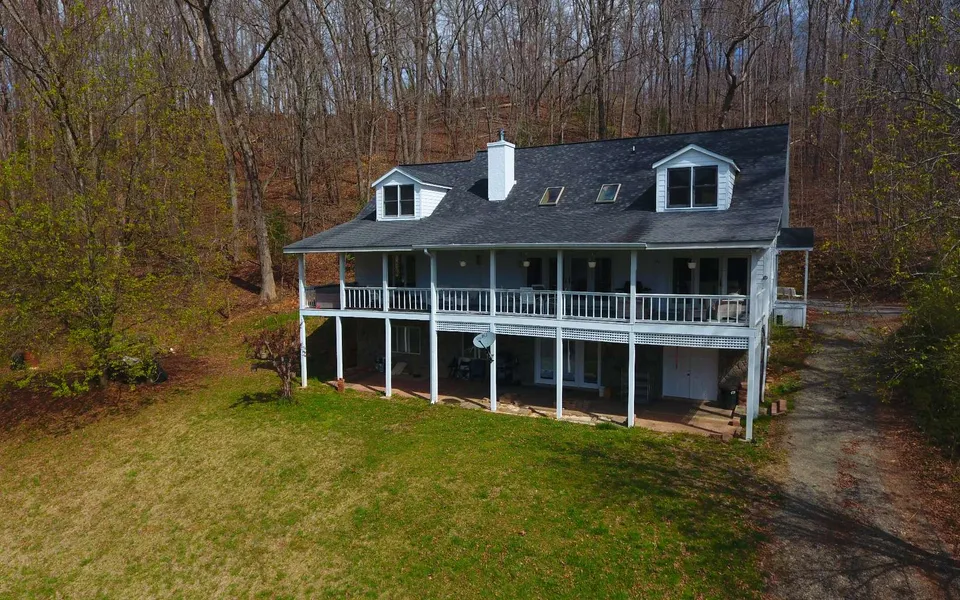 PRIVATE NORTH CAROLINA MOUNTAIN ESTATE ON 7+ ACRES WITH A POND!! Surrounded by tall hardwoods, this 4 bedroom/ 4.5 bathroom home offers acres of pasture & woods, a pond, covered front & back decks, a great room w/ built-in book shelves, a stone wood burning fireplace, a vaulted ceiling w/ exposed beams, a spacious kitchen, wood floors, laundry on the main level, a living room on the main level & another 1 on the lower level, large workshop on the lower level, master on the main, & 2 additional masters on the upper level.