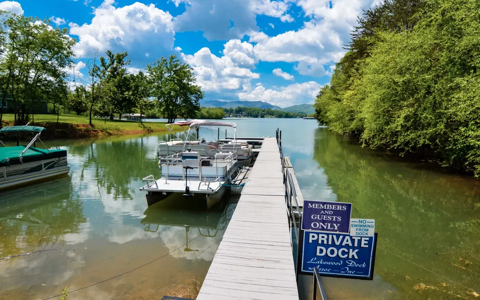 LAKE ACCESS WITH A BOAT SLIP PLUS AMAZING LAKE & MOUNTAIN VIEWS! This home offers incredible views of the lake and mountains, a beautiful setting with a spacious front yard and a park-like beautifully wooded back yard, a screened gazebo, a great room with floor to ceiling stone fireplace & wood floors, double glass sliding doors to a large covered porch, laundry & master bedroom on the main level, living room with kitchenette & bonus room and full bath on lower level, oversized 2 car garage with workshop area, and more.