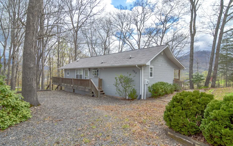 North Carolina Mountain Getaway! Located in the Eagles View subdivision with paved access, this 3 bedroom/3 bathroom home offers an open floor plan, wrap covered deck with BIG mountain views, master bedroom & 1 guest bedroom on the main, vaulted ceiling, gas log fireplace, double glass sliding doors to the deck, living room, workshop & 2nd guest bedroom on the lower level. A must see!