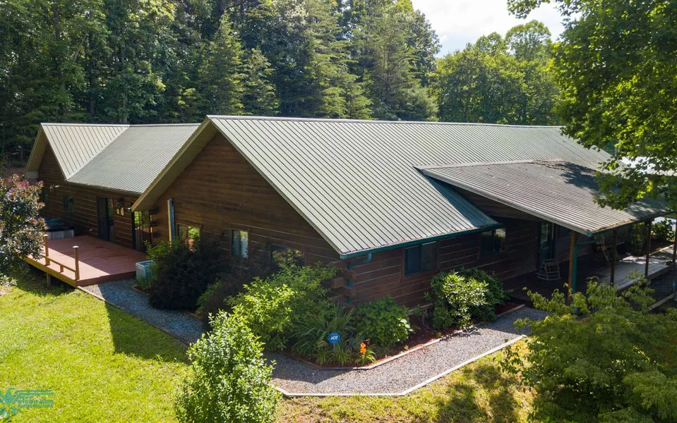 EASY ACCESS ONE LEVEL SPACIOUS CABIN ON 8 ACRES IN THE MOUNTAINS OF NORTH CAROLINA. This large 4 bedroom, 3 bathroom home offers an enormous great room with cathedral ceiling, a custom bar area with a sink, refrigerator & wine cooler, gas fireplace and access to an open deck and courtyard, a beautiful blend of wood and drywall, HUGE master suite with its own side office, fireplace and large walk-in tiled shower, jetted tub, double vanity and water closet w/bidet, dining area with a fireplace, kitchen with stainless appliances, oversized 2 car garage, laundry room, PLUS 8 pastoral & wooded acres and a pond, Just minutes from downtown Hayesville with it's quaint Courthouse square with shops and unique restaurants.