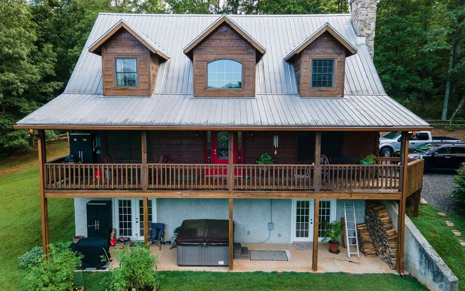 PRIVATE QUALITY BUILT CABIN ON 4+ ACRES BACKING UP TO U.S. FOREST SERVICE LAND IN THE NORTH CAROLINA MOUNTAINS! Privately located next to USFS land, this spacious cabin offers 3 bedrooms & 3.5 bathrooms, hand hewn 2 inch thick log siding with dovetail corners, laurel stair rails with elk antler incorporated, locally harvested and handcrafted wide maple flooring on the main, great room with soaring cathedral ceilings, exposed beams & stacked stone fireplace, pine tongue & groove wall thru out, master & laundry on main, master bathroom with tiled walk-in shower & claw foot tub, antler chandeliers, maple kitchen cabinets, large front and back porches, and a full basement. THE PERFECT PRIVATE MOUNTAIN RETREAT!
