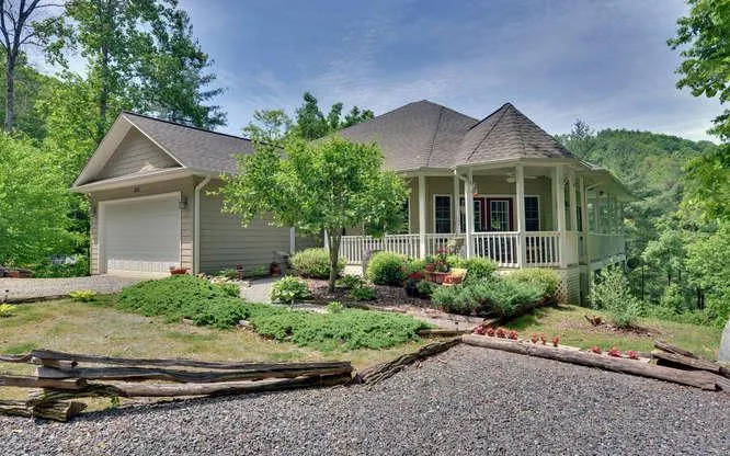 Custom built home in equestrian community located just minutes out of Hayesville. Home features an open floor plan with stacked stone gas log fireplace, wood floors, and 9 foot ceilings. There is a full unfinished basement with plenty of room for your mancave/gameroom and additional bedroom. Plumbing is already roughed-in for additional bath. Covered porches wrap around three sides. Great seasonal mountain view (year round with clearing/trimming). 2 car garage. Magnificent home, priced to sell.
