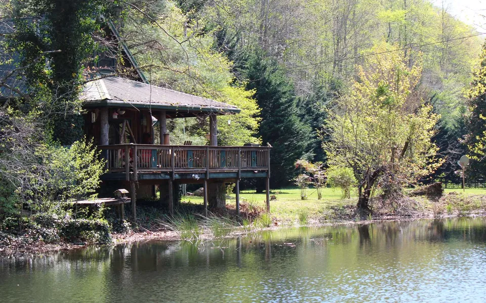 Buy the cabin in the mountains! Approximately 550' of beautiful Tusquittee Creek frontage on the 5.21-acre estate. The 1 bed 1 bath custom cabin with a loft boasts lots of charm including a large front porch overlooking a huge pond, rough sawn wood siding, cherry cabinets, wood stove, and many other quality touches. The custom barn offers a large workshop and a 1 bed 1 bath apartment. The 3 lots offer endless possibilities; mini-farm, mountain getaway, family retreat, or any number of other great options!
