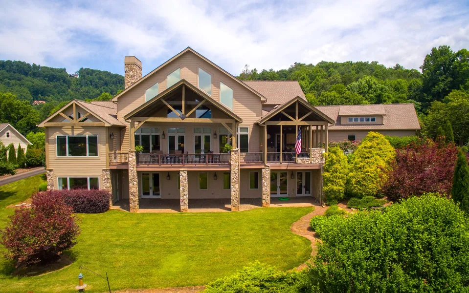 UNMATCHED QUALITY, CRAFTSMAN HOME OVERLOOKING THE 10TH HOLE IN GATED GOLF COURSE COMMUNITY! You must experience this spacious home w/its grand great room with soaring cathedral ceiling, exposed wood beams, 4 fireplaces including a massive floor to cathedral ceiling stone fireplace in the great room, walls of glass, an elevator, beautiful blend of drywall & various woods, huge gourmet kitchen w/ stainless appliances, thick granite counters & a large butler's pantry, dining veranda w/ amazing mountain & golf course views & full out door kitchen, 4 large bedrooms, 2 half baths, large master bathroom w/ jetted tub & tiled walk-in shower, theater room, fitness room w/ sauna, office, 2 wet bars, attractive landscaping w/ rocked waterfall & an oversized 3.5 car garage. PLUS the community features an 18 hole golf course & a fitness center w/ a pool area. If you are looking for a great lifestyle & home in the mountains then this one is a must see.