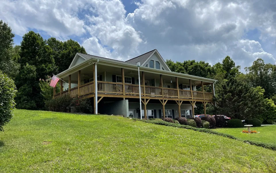BIG VIEW HOME IN THE MOUNTAINS OF NORTH CAROLINA!! This 3 bedroom, 3 bathroom home, centrally located in the Warne Estates subdivision, offers a spacious great room with soaring cathedral ceiling & stone gas log fireplace, wood floors, double french doors leading to large covered deck with big views of the meadow and surrounding mountains, custom cabinets with pull outs, built-in book shelves, and super master suite and guest bedroom on the main level, separate living room and guest bedroom on the terrace level, covered concrete patio on the lower level, tons of storage with room for a workshop and an oversized one car garage. Towns County water.