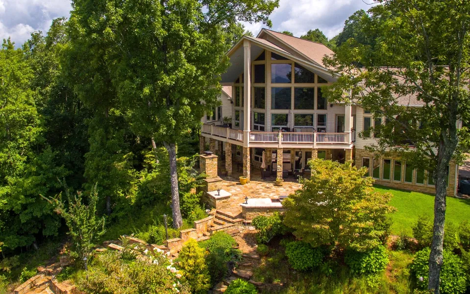 PRIVATE LUXURY LIVING WITH AMAZING LAKE & MOUNTAIN VIEWS IN THE MOUNTAINS OF NORTH CAROLINA!! Privately located on nearly 10 beautifully wooded acres at approx 2600 elevation this spacious home offers a gated entrance, Brazilian cherry, marble, Italian stone & travertine tile floors, three double mahogany doors, great room with floor to cathedral ceiling stone fireplace & walls of windows, 4 total fireplaces, huge formal dining room, master on main, sunroom, a living room, stone patio area with full outdoor kitchen & outdoor fireplace, stunning waterfall & ornamental pond, courtyard with a rose garden, climate-controlled 3 car garage with studio apartment above & more. PLUS only minutes from a golf course & marinas. A TRUE PRIVATE MOUNTAIN RETREAT!!