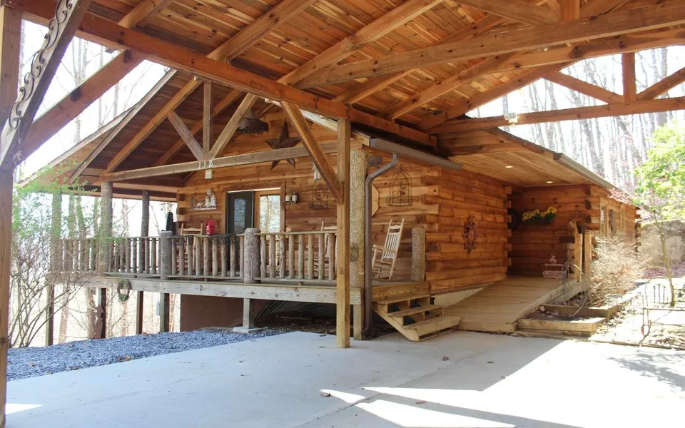 Very private, true log cabin situated on 11.43 acres. This 2 bedroom 2 bath home has cathedral tongue and groove ceilings throughout. Beautiful pine floors, all wood interior and wood burning stove. Open kitchen living room concept. Master bath has tiled floors with large handicap shower. Master bedroom and laundry are on the main floor allowing for one floor living. Wide porches with open beams and large cut trees for ceiling support. Enjoy the mountains of Western NC and abundance of wildlife. There is a finished bonus room in the basement, perfect for additional sleeping quarters or media room. Two car post and beam carport with a ceiling height to store an RV. This cabin is conveniently located to Hayesville NC, Hiawassee GA, Lake Chatuge, shopping, golf, dinning and so much more.