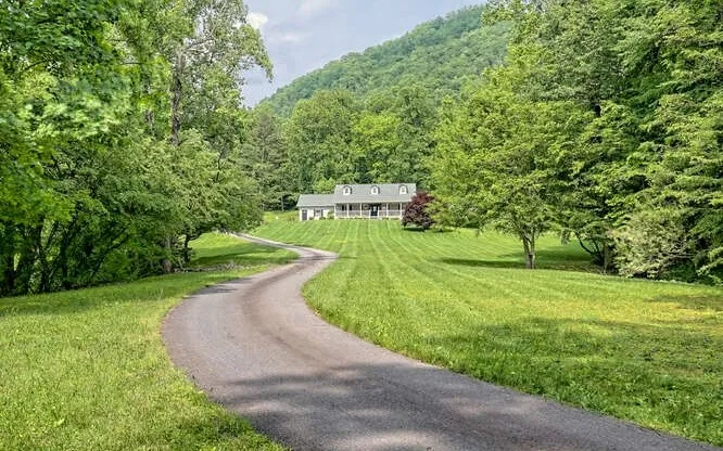 Extremely private, year round paved access and minutes to Hayesville and Hiawassee, this exceptional home is sited on a gorgeous lot in High Meadows subdivision, which is approx 1 mile from Mountain harbour golf course. This 3br/3 bath home is move in ready and has large covered porches, large master suite, dining room with eat in kitchen, wood flooring, stone fireplace, Low maintenance Vinyl Shake siding, 2 car garage, full finished basement with an additional kitchen. This gentle 3.58ac +/- lot is located in an area of large acreage tracts and is surrounded by creeks on two sides. large garden spot with outbuildings and sounds of natural waterfalls. First time on the market.