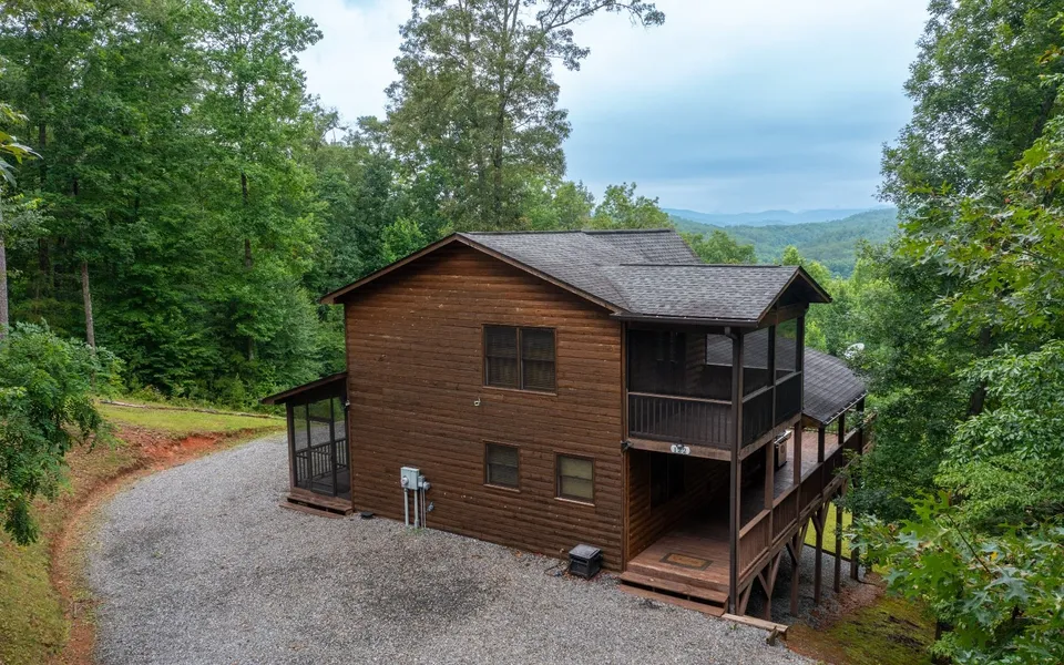 A FURNISHED CABIN IN THE NORTH CAROLINA MOUNTAINS!! Surrounded by tall hardwoods, this spacious 2 bedroom/2 bathroom home offers an open floor plan, great room with cathedral ceiling & walls of glass to enjoy the BIG mountain views, a wrap around deck, screened-in deck, master bathroom with walk-in shower, laundry closet on main level, a beautiful blend of drywall and wood, kitchen with granite counters, s/s appliances, pantry, solid wood doors, and a loft sitting area. Plus within 8 miles of Hayesville & Murphy. Convenient to Folk School, Community college and Hospital.