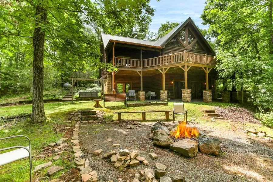 Immerse yourself in the quintessential North Carolina mountain living experience w this enchanting cabin, strategically positioned on an expanse exceeding one wooded acre for optimal privacy & tranquil views, one story home with a finished basement. As you approach, the home greets you with a welcoming front porch, setting the stage for the splendid al fresco experiences awaiting on the expansive back deck. Inside, natural light cascades through two sets of glass sliding doors into an impressive great room, boasting a soaring cathedral ceiling adorned w/ exposed beams & crowned by a striking stacked stone wood-burning fireplace. The seamless blend of drywall & wood creates a tapestry of textures that encapsulates rustic opulence. This home is an ode to craftsmanship, noticeable in fine details such as wood floors, antler light fixtures, & solid wood doors that punctuate every room. The living spaces are anchored by a kitchen equipped w/ a gas stove, creating a chef's haven within the mountainscape. A convenient laundry room supplements the practical layout. Enjoy rest & relaxation in any of the three generously sized bedrooms, particularly the master suite, complete w/ French doors leading to the deck & a spa-like master bathroom featuring a jetted tub & exquisite glass & tile walk-in shower. The lower level extends the home's grandeur, offering a cozy wood stove, a commodious workshop area, a dedicated craft room, & access to a patio area. Duel fuel efficiency & an outdoor fire pit area ensure comfort & ambiance year-round. Located in the Brasstown Trails community, this property offers access to Brasstown Creek via a community access area, w/ nice paved roads throughout. Located in Warne, NC, off Pinelog Road. Nearby attractions include John C Campbell Folk School & The Crown Restaurant in Brasstown, plus the restaurants & shops of Blairsville, Hayesville, or Murphy!