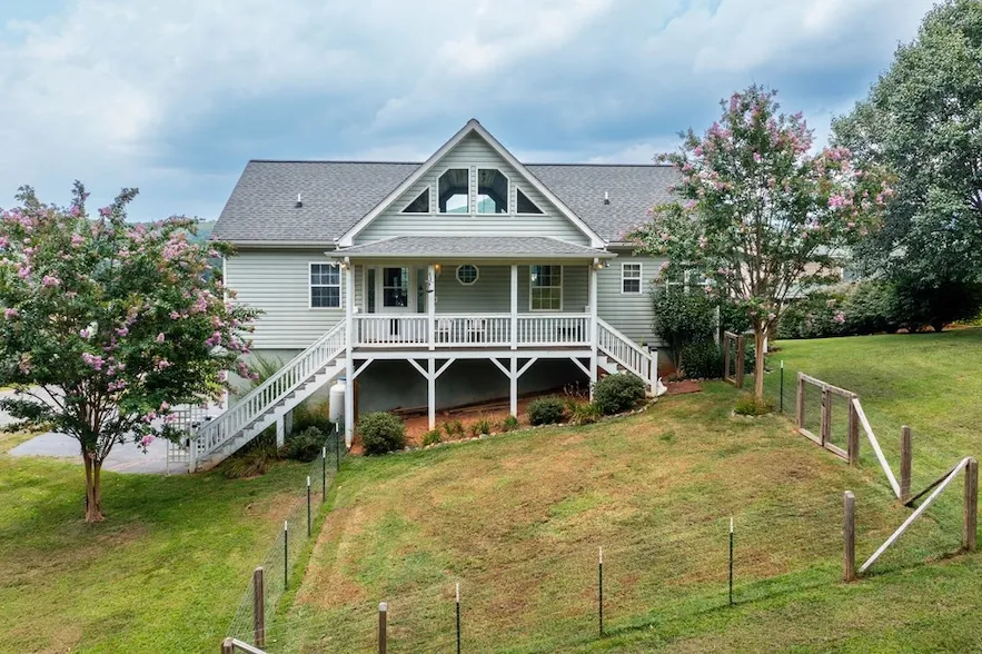 WOW WHAT A VIEW YOU GET WITH THIS HOME!!! This 3 bedroom, 3 bathroom home, located in the Warne Estates development, offers a spacious great room with soaring cathedral ceiling and stone gas log fireplace, wood floors, the double french doors lead out to a large covered deck with big views of the meadow fields and surrounding mountains, has custom cabinets with pull outs, built-in book shelves, and super primary suite and guest bedroom on the main level, separate living room and guest bedroom on the terrace level, covered concrete patio on the lower level wide enough and long enough to park two vehicles , tons of storage with room for a workshop and an oversized one car garage. Served by Towns County water system. MOTIVTED SELLER !!!!
