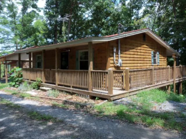 0.61 surveyed acres with a 2BD/1.5BA rustic stained wood siding cabin with approx 720 sq ft nestled is a Smoky Mountains wooded setting. Cabin has totally wooded interior from floors, walls & ceilings. Remodeled & updated with: oak hardwood floors, windows, security doors, shutters, insulation, bathroom & plumbing, wrap around decking, railings, gates & lower patio covered decking. Lovely 3 car detached wooded car port especially designed to match the home. All appliances remain and some of the furnishings. Lovely country setting within walking distance to Dale Hollow Lake. Loads of wildlife and views. Ideal cabin for the lake retreat / getaway with a peaceful country setting.