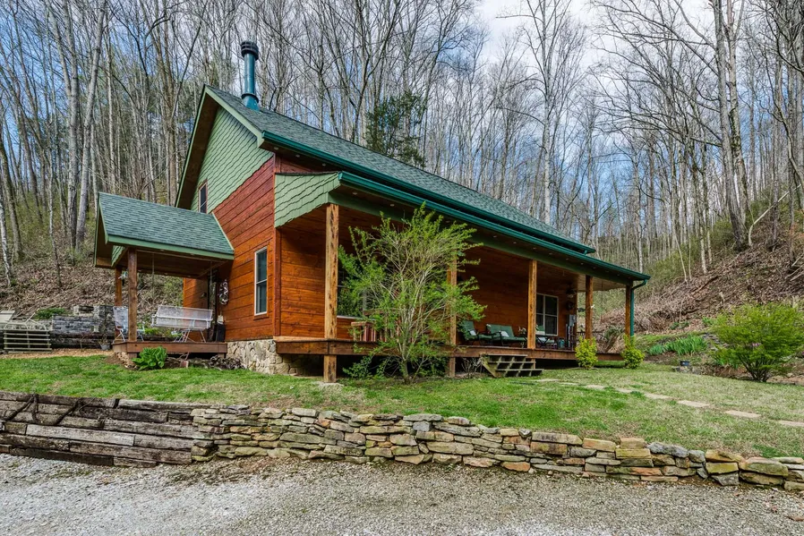 LOCATED AT THE HORSE CREEK MARINA RESORT: 1.66 ac with custom 2 story siding log home 3BD/2BA, approx 1920 SQ FT, TN stone wood burning FP, vaulted wood ceilings with beam in the living room , open concept dining & kitchen. Custom country style kitchen with a nook, Corian counter tops & pantry. Knotty pine ceilings & walls throughout the home, cedar & pine flooring, textured walls and a built in bench/ bed for that little person guest , upper level is used as a bedroom & family room loft area & full bath with a claw foot tub and lots of county cozy dcor. Home has a covered front & side deck. Detached patio area with a stone built grill for those long lovely evening with family & friends. A cute well-built log garden shed to match the home. Small metal build (could be used as a garage) will remain (large green one will not). Creek, rock dcor formations, professional landscaping, f...