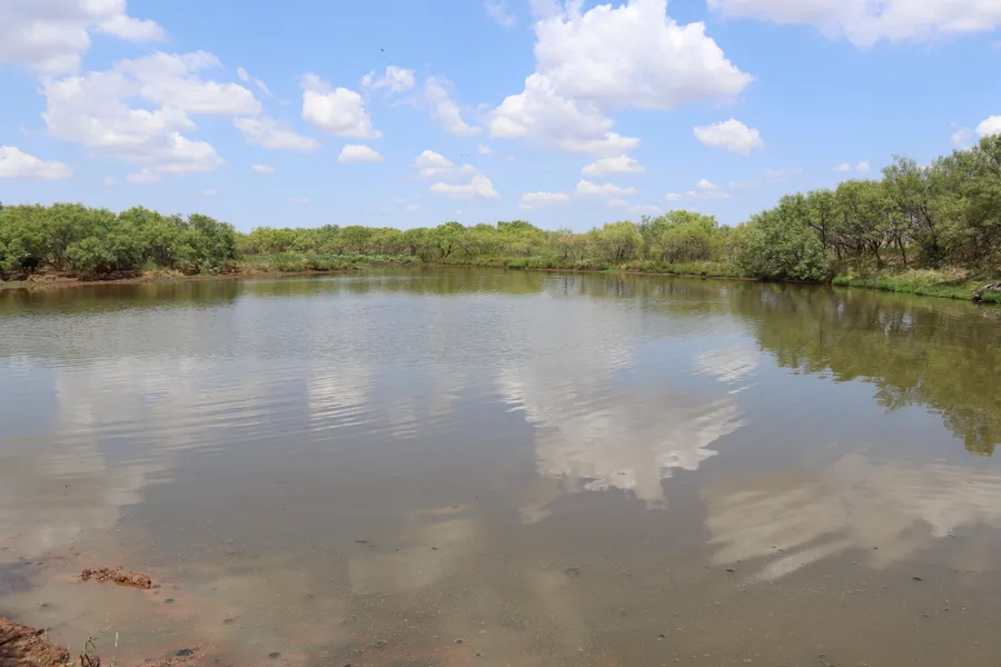 Terrain: Slightly rolling with aproximately 65% Mesquite cover. Clearings consist of native grasses. Large valley feeds stock pond.