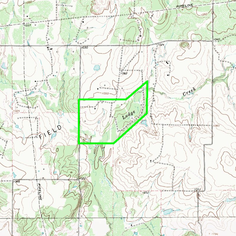 Two forks of Lodge Creek roll through the southern half of the property, providing a mile of frontage. This seasonal creek flows water during the rainy seasons and will hold pockets of water in the dry summer months. The whole creek is lined with beautiful mature post oaks, some of which are over 40' tall. There are five small fields following the creek too, which are currently being used as food plots for wildlife. This combination of water, vegetation, and the shaded cover of the woods creates a perfect habitat for whitetail deer, and trophies sc...