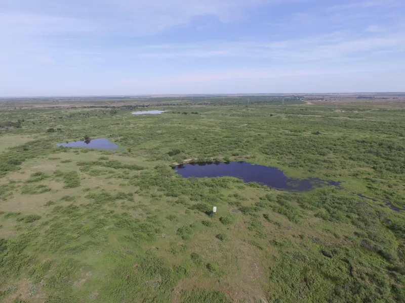 The terrain is rolling with moderate elevation changes. There are several high elevation points on the ranch that allow for unbelievable views. There is wet weather creek that extends through the central portion of the ranch in an east west direction. Mesquites are moderate with scattered open areas. The wet weather creek is dominated by hardwoods. Stock water is provided by 7 stock ponds currently at full capacity.