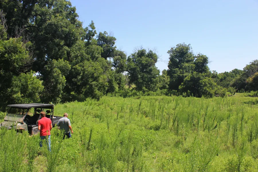 The front 110 +/- acres of the place is in coastal bermuda grass and was used as a hay farm in the recent past. Two large water tanks in this 110 acres will provide water for livestock, if you wanted to run it as a cattle ranch. The rest of the property is mostly cleared and has native grasses, with the exception of a really pretty native pecan grove on the far north end. The trees in this grove are tall and mature and create a very nice wooded area. A small spring fed creek bubbles up an...
