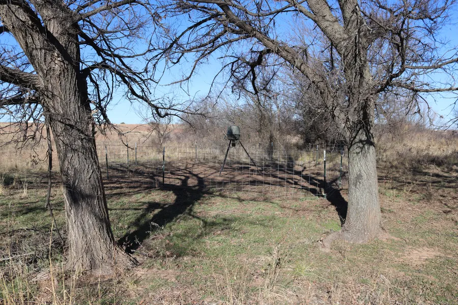 Fantastic views of the country side! Great place for a home site or weekend cabin with electricity on site. Rolling plains with tall grass falls off into a nice draw lined with native hardwood timber. Little bluestem and big bluestem cover the prairie pasture providing good grazing for livestock and cover for wildlife. Several plum thickets provide additional cover. Large whitetail deer can be found in this area.
