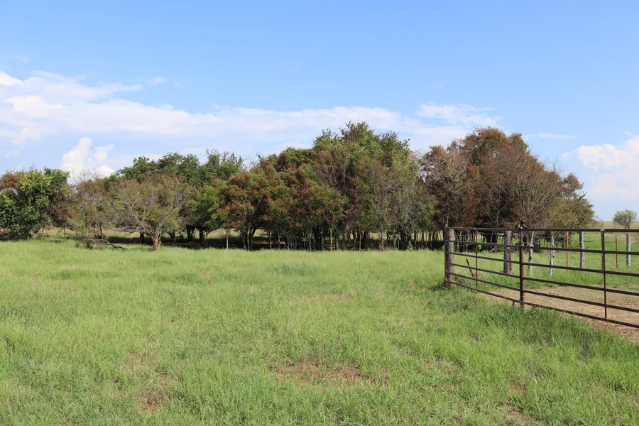 Vegetation: Small grove of native Sumac, Bois D'arc, Hackberry and Elm trees line wheat field. Some scattered mesquites in pasture. Excellent varieties of native bunch grasses. Wheat field for hay production and winter grazing.