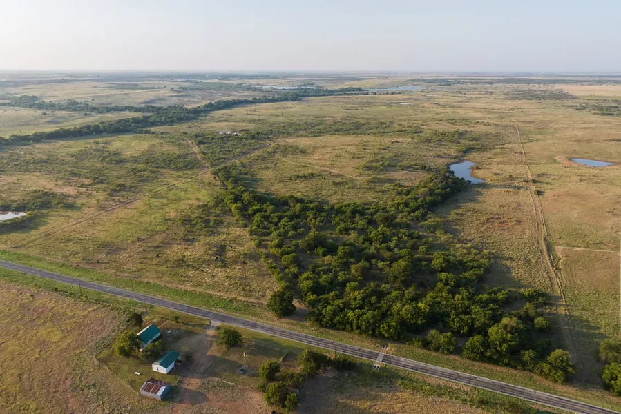The majority of the ranch has moderate to densely wooded mesquite pasture along with scattered open grassy areas. The north portion along the road frontage is densely wooded with hardwoods. The topography is rolling to level with over 70 feet of elevation change. There is a high point near the center and another near the southwest corner, both offering impressive panoramic views.