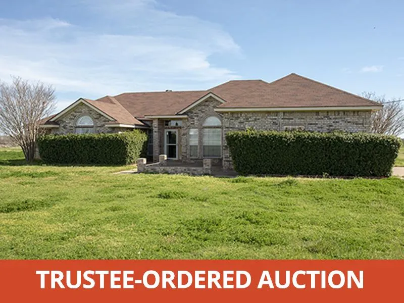 Trustee-ordered auction of 3BR/3BA full-brick home on 4 acres located northeast of Wichita Falls, TX along Hwy 79.