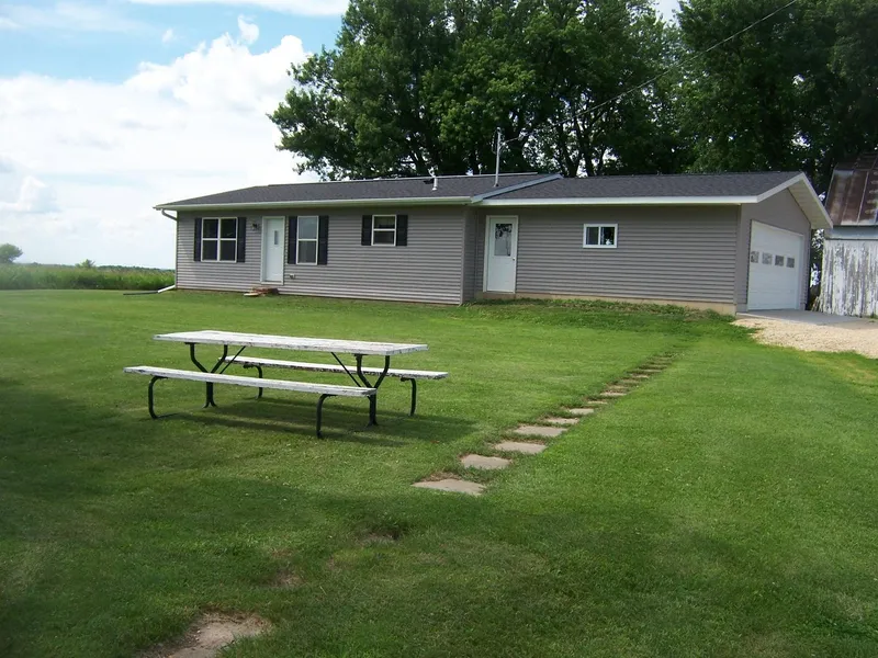 1-Story Frame House built in 2013 - 2 BR, 1 BA, full basement, central air, attached garage; Machine/Utility building 26 x 32 - built in 1900; Machine/Utility building 24 x 36 - built in 1900; Barn/shed 57 x 62 built in 1930; Silo 20 x 60 built in 1979; Metal shed 24 x 26 built in 1950; Steel grain storage bin - Eaton drying bin and auger - 24 x 14 built in 1980; Steel grain storage bin - STG bin - 18 x 12 built in 1980.