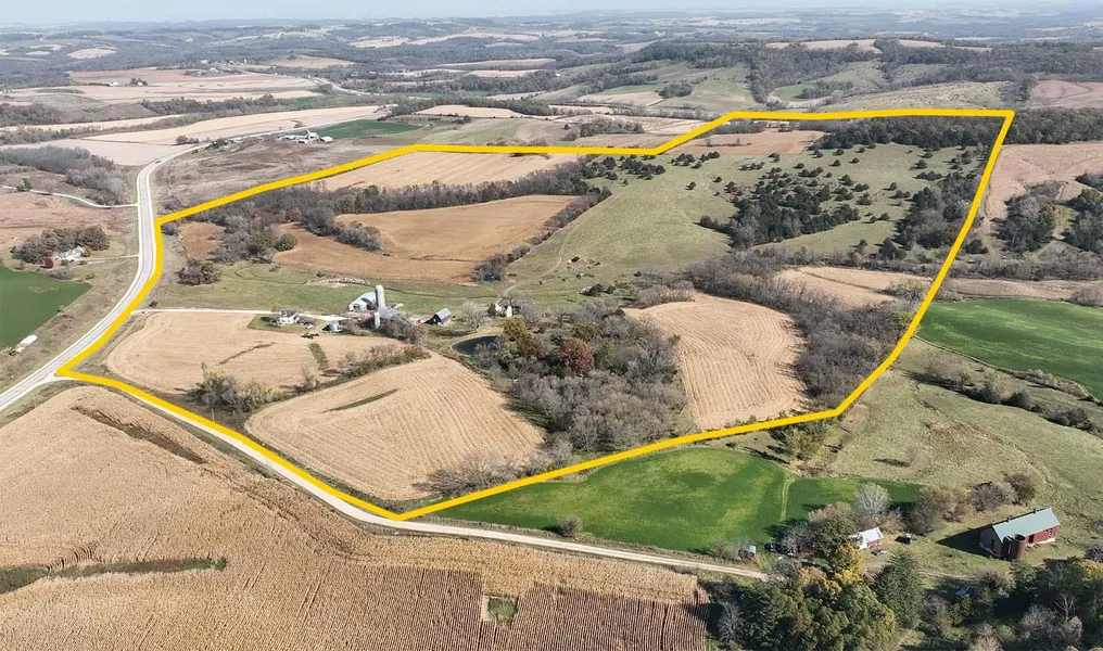 The 185.19 +/- acres consist of currently 86.1 FSA certified cropland acres, 69 acres of pastureland, a 2 story Farmhouse, 45x100 pole barn, 24x18 grain bin and 5 other outbuildings including a large barn with an attached lean to. The tillable acres mostly consist of Jacwin Loam, Orwood and Fayette silt loams carrying an average CSR2 rating of 50.9. The pasture acres provide year around water with a small creek and pond on the property. .87 acres of waterways are enrolled in the conservation Reserve Program paying $300 per acre, $261 annually. This contract expire...
