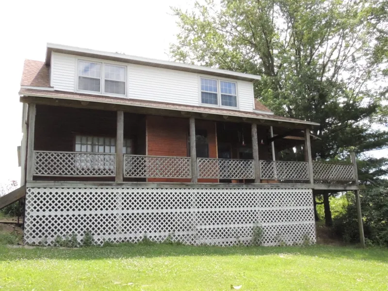 Nestled in the pines on the edge of town, youll find this peaceful home on 2.89 acres. A large covered deck overlooks the park-like yard, and the exposed logs throughout the home give it a ton of charm. Lots of possibilities with this one! Exterior vinyl siding could be removed to expose logs again. 20 minutes from the river. City water and garbage pickup.