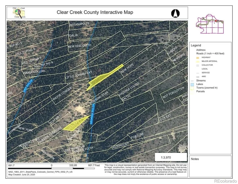 Research Parcel InformationPlease use the Clear Creek county GIS site to view each property location. Use the property account numbers listed below. R006938, R006543, R003982, R007089, R002861.