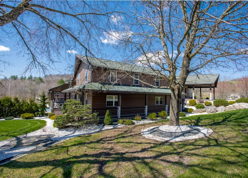 This estate is a must-see in person to get the true WOW factor of what it offers. The large home has a large open-design dining and kitchen area with breathtaking woodwork. The doors lead out to the upper deck area overlooking the backyard and outdoor pool area. The eight bedrooms give a family or guest plenty of room, with bedrooms on the upper and lower floors. The state-of-the-art modern rustic look of wood and stonework gives the place a cozy feeling even with the large space. The two full bathrooms on each floor provide each level with a bathroom. The large entertainment room downstairs flows into an outside bar area and dining area, which also overlooks the play area and pool. The pool house has room for the pool utilities, pool toys, and a full bathroom for guests. The barn and stable area close to the house provide a heated tack room for comfort. The small arena near the trailer and RV shed allows for work in a smaller, lighted area. The large arena above the house is fully lit, with large parking areas for trailers on both sides of the arena. The fencing around the arena provides grazing for livestock while not in the arena. The 10-acre field above can be pasture as well. The smaller traditional barn near the large arena can be used for other livestock or guest animals. Call today to set up a showing on this unique property.