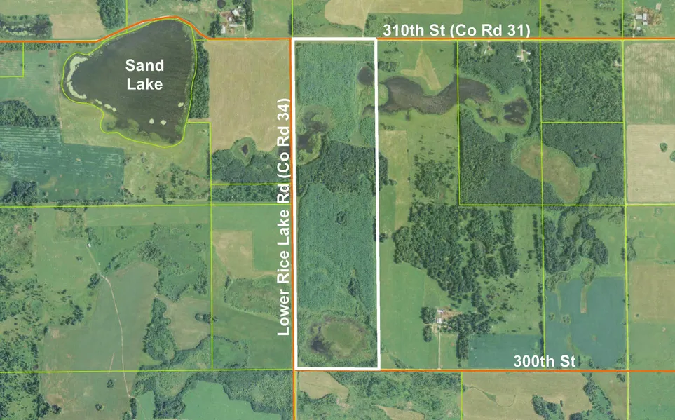 Large tract of land by Sand Lake southwest of Bagley. Level wooded upland slopes toward open wetland/pond areas in the south portion and on the northeast and northwest sides. Paved county roads border the north and west sides, and a gravel township road borders the south. Trails in the northwest corner and midway down the west side traverse throughout the land. A 2008 timber plantation provides habitat for a wide variety of wildlife such as whitetail deer, ruffed grouse, migratory birds, and smaller animals. The property is surrounded by large tracts of privately-owned land. Lower Rice Lake State WMA is about 15 miles away for additional deer, bear, small game, and waterfowl hunting. Bagley is less than 10 miles away for schools, shopping, dining, community events, and more.