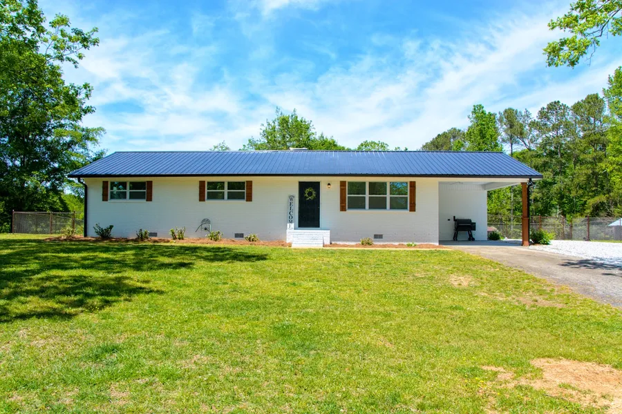 This adorable renovated 3 bed, 1.5 bath brick ranch sitting on 42 acres with a pond and small creek is the perfect family farm. This home has a new roof, new windows, new interior & exterior paint, hardwood floors, LVP flooring, updated electrical, new plumbing fixtures, and tiled bathrooms. The eat-in kitchen has new cabinets, butcher block countertops, and new stainless appliances. The living room has a welcoming gas log fireplace. Located just off the kitchen is a potential family room, bonus room, or 4th bedroom. This property also features plenty of privacy, 35 acres of fenced pastureland perfect for livestock, mature hardwoods, abundant wildlife, a barn, a 40'x60' metal shop, a 30'x80' three bay insulated metal shop with power, water & concrete floors, and is located only 10 mins from I-20. This property is a dream!