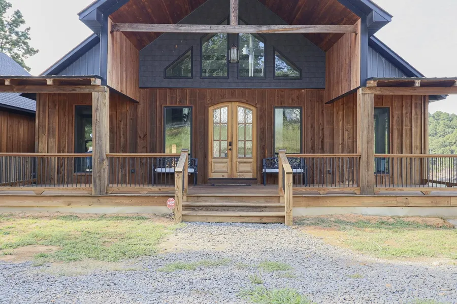 Incredible views of Greers Ferry. This three year old home includes 4 bedrooms and 3 bathrooms on two levels. Main level includes living room, dining area, eat-in kitchen, two bedrooms and two bathrooms, office space, large deck, and access to outdoor living space. Downstairs you will find a second living area, two bedrooms, one bathroom, and access to covered patio and firepit. Walking trail and access to lake. Price of this home includes all furnishings, boat, and takeover of boat slip lease. Home also includes personal fenced playground area and 2-car garage. Close to air strip.