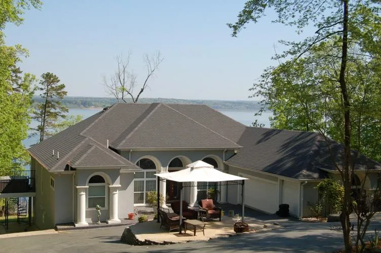 Nearly every room in this stately home located in exclusive Diamond Bluff Estates provides unparalleled views of the crystal clear water of the lake. Upper and lower balconies offer perfect viewing opportunities for quiet sunrises and morning coffee. Light and airy, this 6BR/6BA home boasts of extensive crown molding and columns throughout, an antique chandelier in the great room, a fabulous master bath with a slate tile double shower and roomy jetted tub. Cedar steps lead to the expansive walkout basement that houses a game room with a cedar wet bar, an antique copper fireplace mantle and three bedrooms, one of which has a stunning view of the lake.