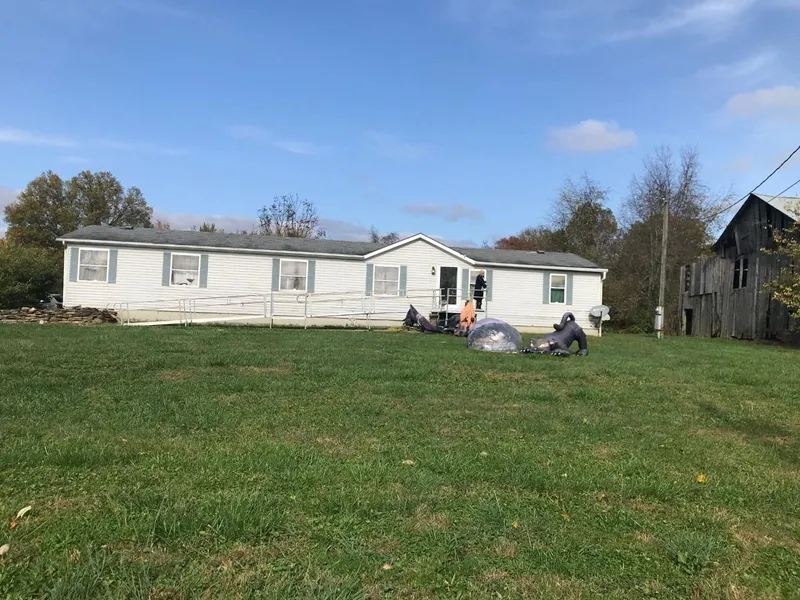 Unique find! Manufactured home with a full finished basement! Needs a little TLC and being sold as is, but the possibilities are endless! Features five large bedrooms with a study that could be converted to a sixth. Roomy master bedroom with adjoining master bath has large whirlpool tub with skylight above. 42 x 24 fully finished basement is ready for entertaining! House sits on 3.5 rolling acres with a 27 x 38 barn.