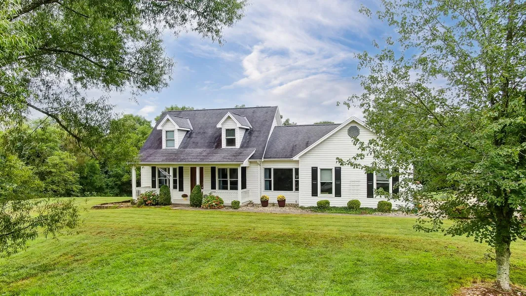 Peaceful country living awaits the new owner(s) of this beautifully maintained Cape Cod nestled on 2 private acres. First floor primary bedroom with adjoining bathroom, hardwood flooring throughout the main living space, wood-burning fireplace in the living room, first floor laundry, new kitchen appliances & new HVAC. Three finished levels with a full bathroom on every floor & lower level walkout. Enjoy an oversized 2-car garage, spacious front porch, large rear deck, pole barn & shed.